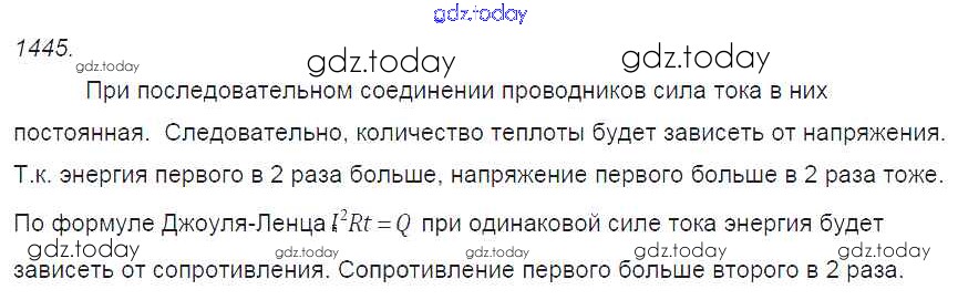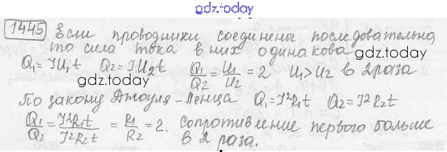 На страницах сайта gdz.today вы найдете учебный и вспомогательный материал, направленный на улучшения знаний школьной программы. ГДЗ - онлайн мир знаний Решение к заданиям 1445 Сборнику задач по Физике для 7-9 класса Лукашик, Иванова Просвещение 2011