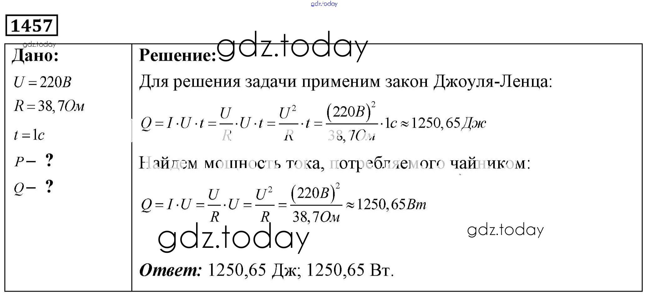 На страницах сайта gdz.today вы найдете учебный и вспомогательный материал, направленный на улучшения знаний школьной программы. ГДЗ - онлайн мир знаний Решение к заданиям 1457 Сборнику задач по Физике для 7-9 класса Лукашик, Иванова Просвещение 2011