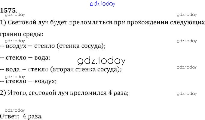 На страницах сайта gdz.today вы найдете учебный и вспомогательный материал, направленный на улучшения знаний школьной программы. ГДЗ - онлайн мир знаний Решение к заданиям 1575 Сборнику задач по Физике для 7-9 класса Лукашик, Иванова Просвещение 2011