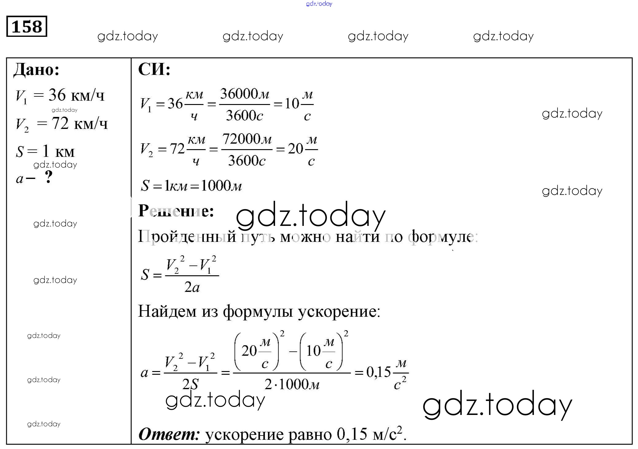 На страницах сайта gdz.today вы найдете учебный и вспомогательный материал, направленный на улучшения знаний школьной программы. ГДЗ - онлайн мир знаний Решение к заданиям 158 Сборнику задач по Физике для 7-9 класса Лукашик, Иванова Просвещение 2011