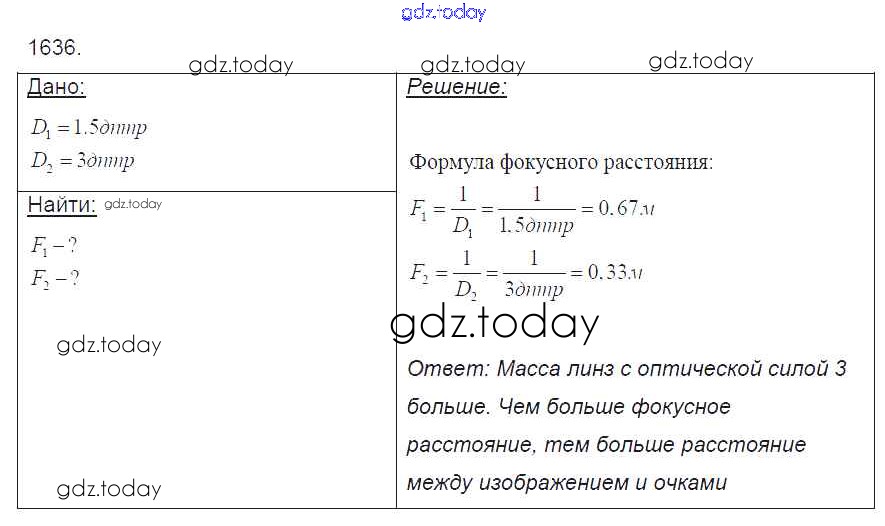 На страницах сайта gdz.today вы найдете учебный и вспомогательный материал, направленный на улучшения знаний школьной программы. ГДЗ - онлайн мир знаний Решение к заданиям 1636 Сборнику задач по Физике для 7-9 класса Лукашик, Иванова Просвещение 2011