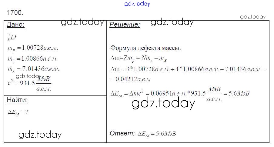 На страницах сайта gdz.today вы найдете учебный и вспомогательный материал, направленный на улучшения знаний школьной программы. ГДЗ - онлайн мир знаний Решение к заданиям 1700 Сборнику задач по Физике для 7-9 класса Лукашик, Иванова Просвещение 2011