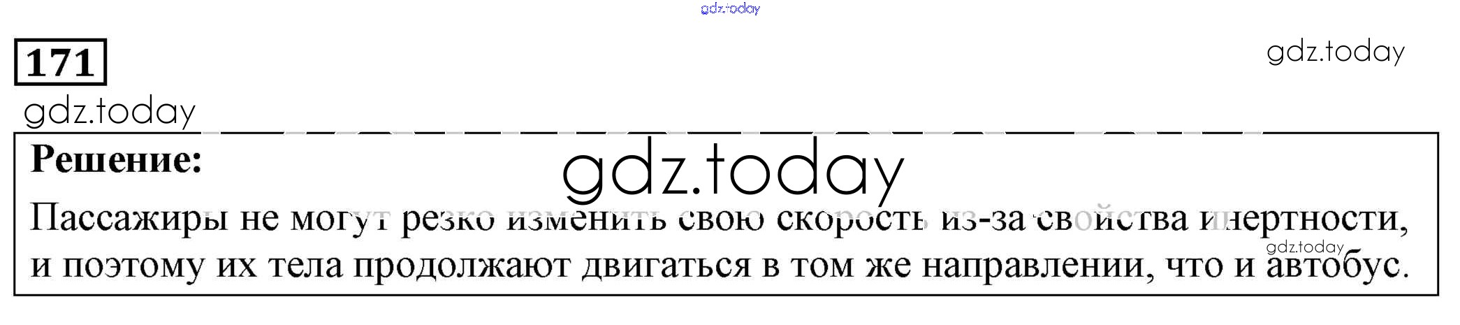 На страницах сайта gdz.today вы найдете учебный и вспомогательный материал, направленный на улучшения знаний школьной программы. ГДЗ - онлайн мир знаний Решение к заданиям 171 Сборнику задач по Физике для 7-9 класса Лукашик, Иванова Просвещение 2011