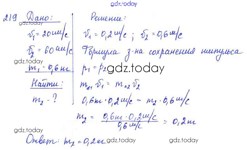 На страницах сайта gdz.today вы найдете учебный и вспомогательный материал, направленный на улучшения знаний школьной программы. ГДЗ - онлайн мир знаний Решение к заданиям 219 Сборнику задач по Физике для 7-9 класса Лукашик, Иванова Просвещение 2011