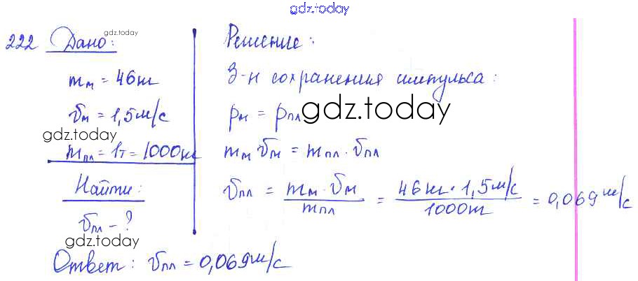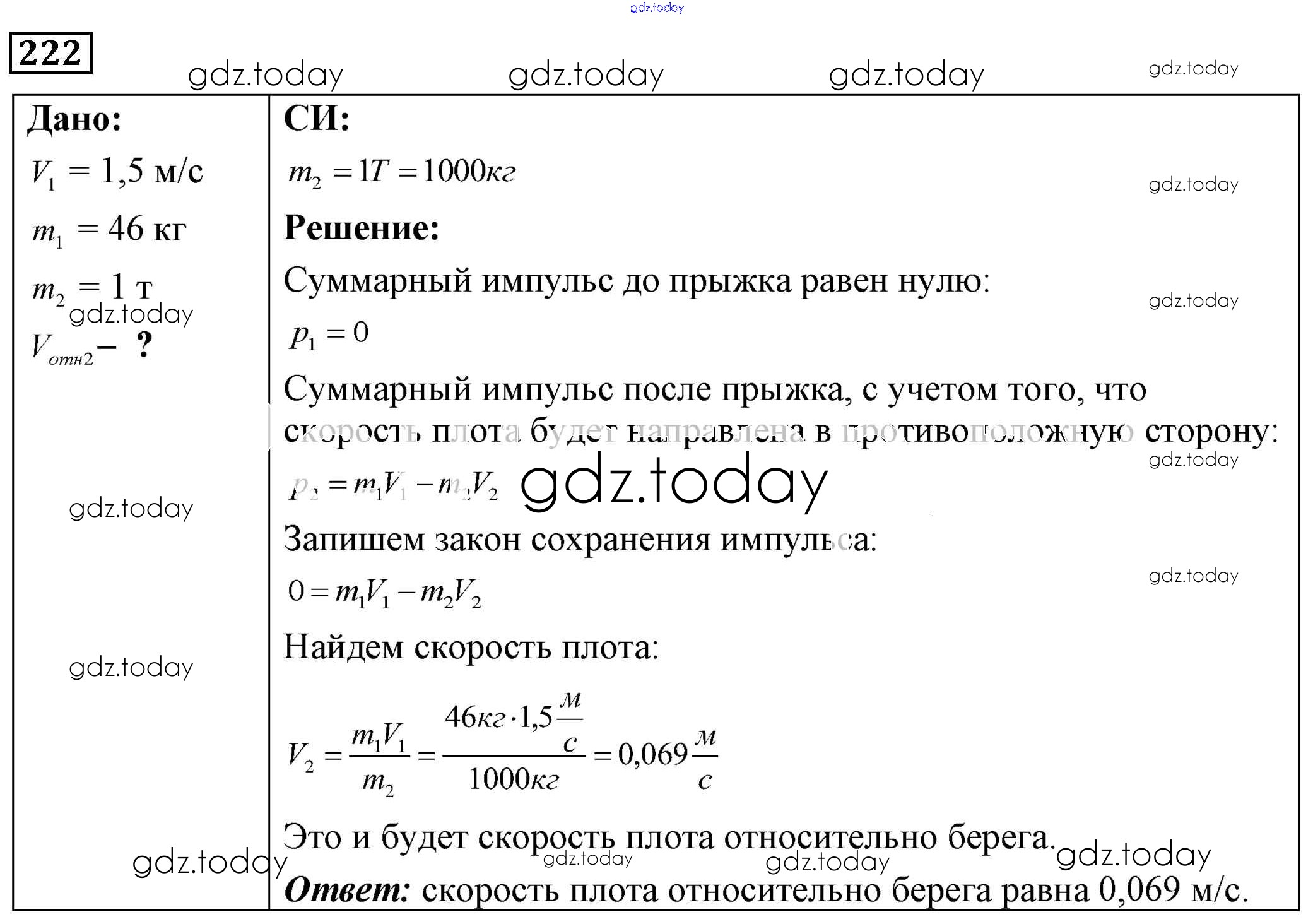 На страницах сайта gdz.today вы найдете учебный и вспомогательный материал, направленный на улучшения знаний школьной программы. ГДЗ - онлайн мир знаний Решение к заданиям 222 Сборнику задач по Физике для 7-9 класса Лукашик, Иванова Просвещение 2011