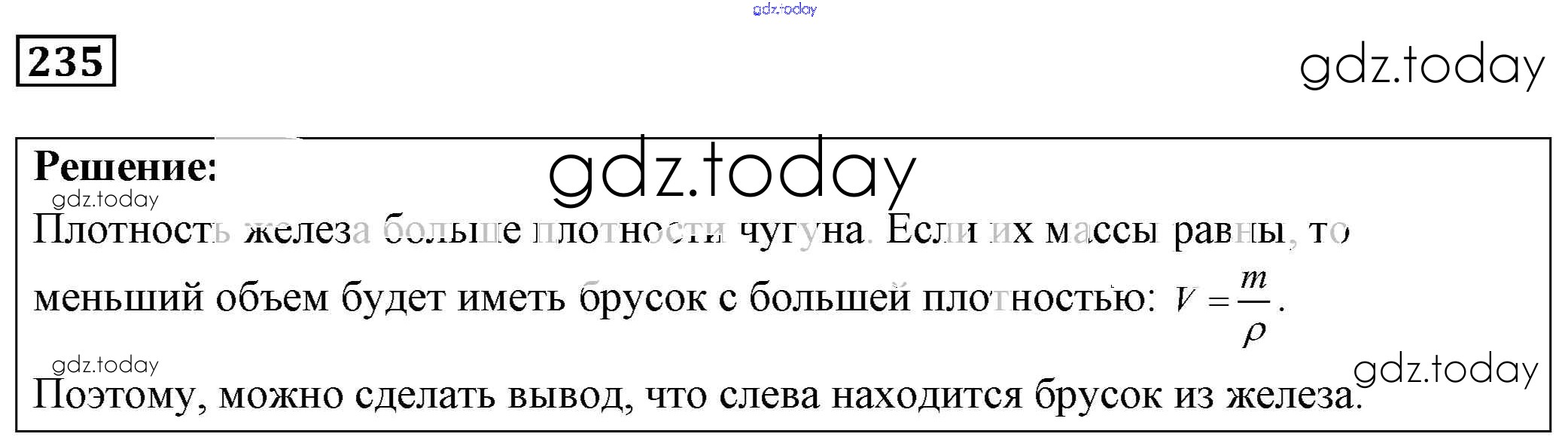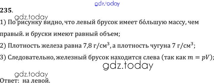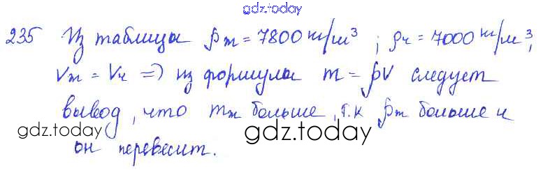 На страницах сайта gdz.today вы найдете учебный и вспомогательный материал, направленный на улучшения знаний школьной программы. ГДЗ - онлайн мир знаний Решение к заданиям 235 Сборнику задач по Физике для 7-9 класса Лукашик, Иванова Просвещение 2011