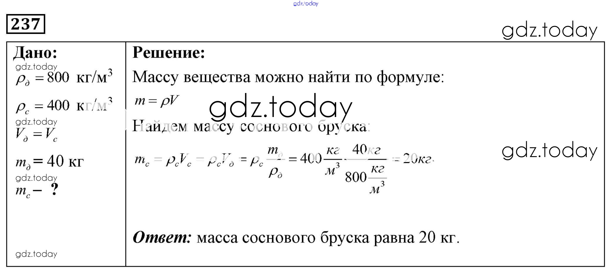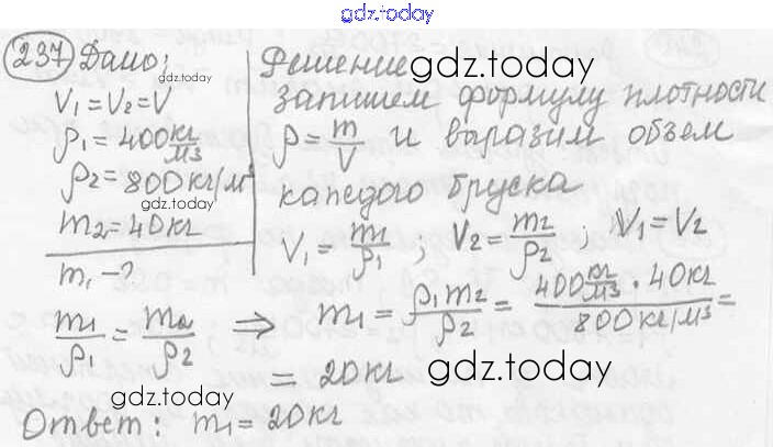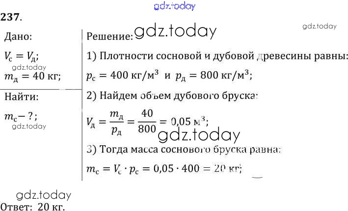 На страницах сайта gdz.today вы найдете учебный и вспомогательный материал, направленный на улучшения знаний школьной программы. ГДЗ - онлайн мир знаний Решение к заданиям 237 Сборнику задач по Физике для 7-9 класса Лукашик, Иванова Просвещение 2011