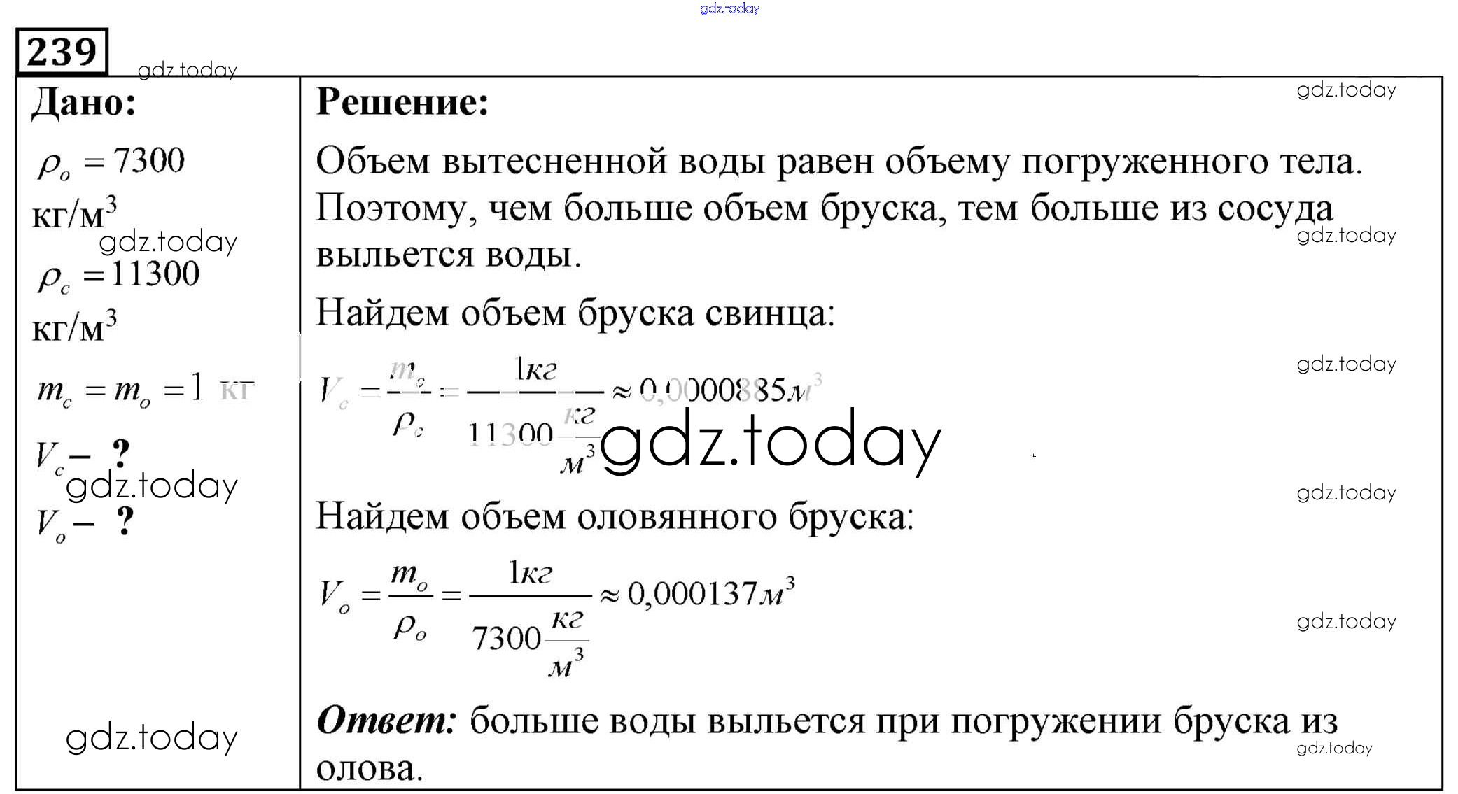 На страницах сайта gdz.today вы найдете учебный и вспомогательный материал, направленный на улучшения знаний школьной программы. ГДЗ - онлайн мир знаний Решение к заданиям 239 Сборнику задач по Физике для 7-9 класса Лукашик, Иванова Просвещение 2011