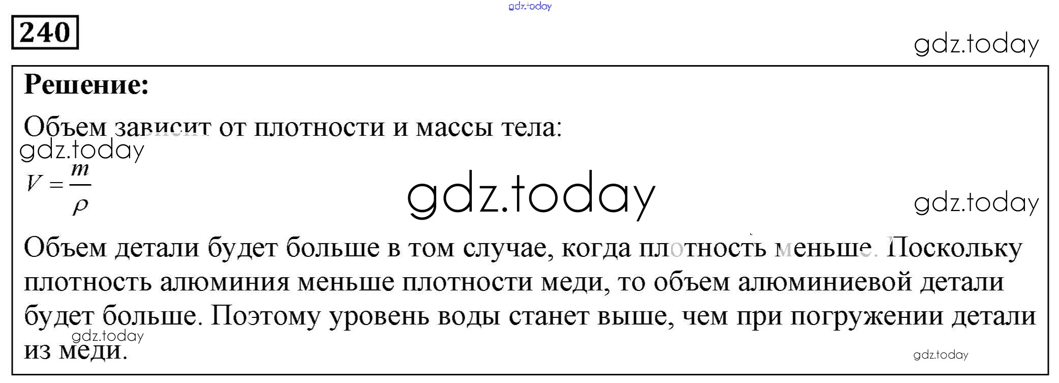 На страницах сайта gdz.today вы найдете учебный и вспомогательный материал, направленный на улучшения знаний школьной программы. ГДЗ - онлайн мир знаний Решение к заданиям 240 Сборнику задач по Физике для 7-9 класса Лукашик, Иванова Просвещение 2011