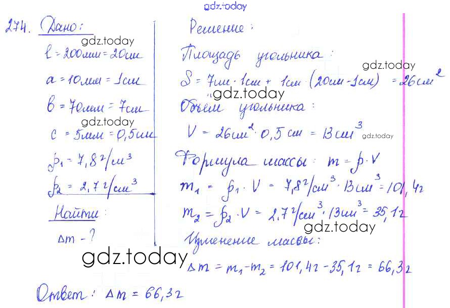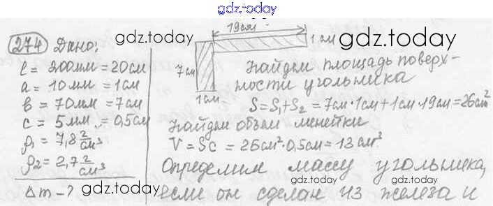 На страницах сайта gdz.today вы найдете учебный и вспомогательный материал, направленный на улучшения знаний школьной программы. ГДЗ - онлайн мир знаний Решение к заданиям 274 Сборнику задач по Физике для 7-9 класса Лукашик, Иванова Просвещение 2011