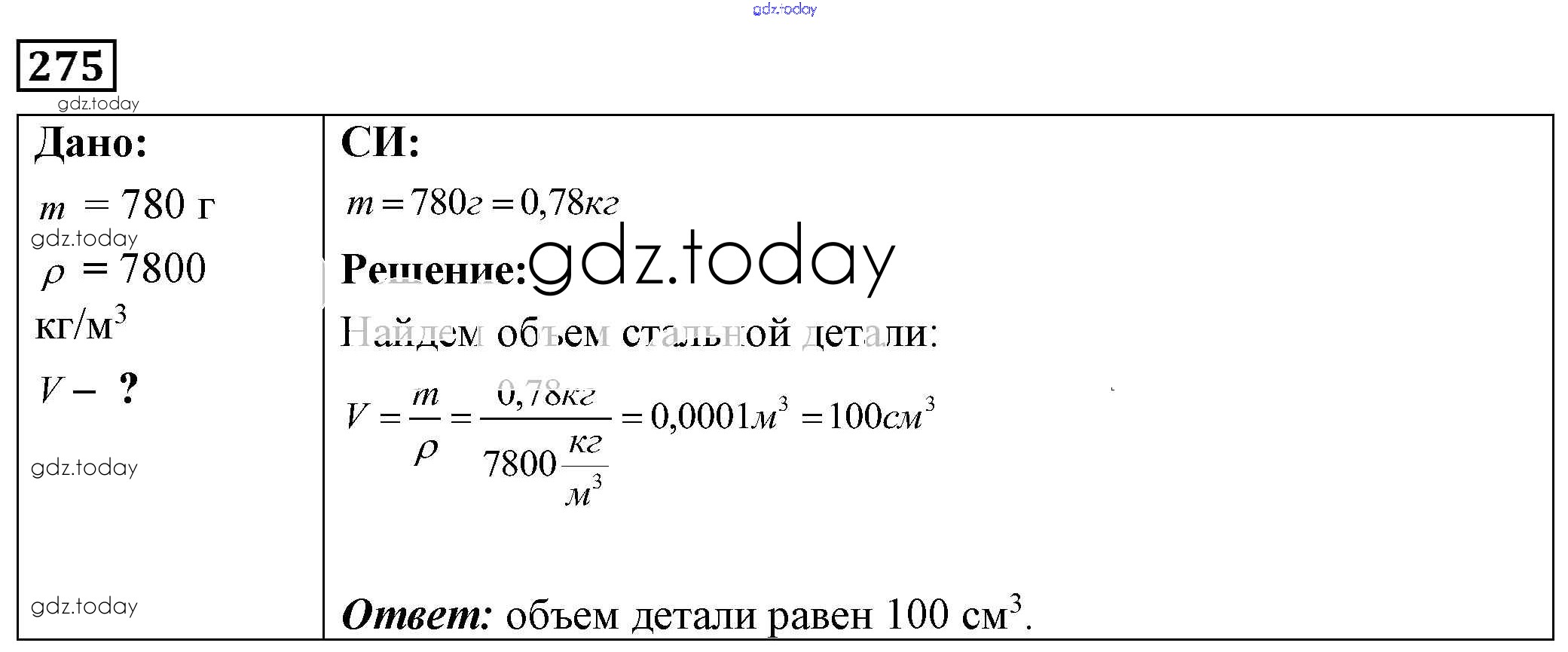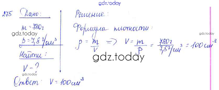 На страницах сайта gdz.today вы найдете учебный и вспомогательный материал, направленный на улучшения знаний школьной программы. ГДЗ - онлайн мир знаний Решение к заданиям 275 Сборнику задач по Физике для 7-9 класса Лукашик, Иванова Просвещение 2011