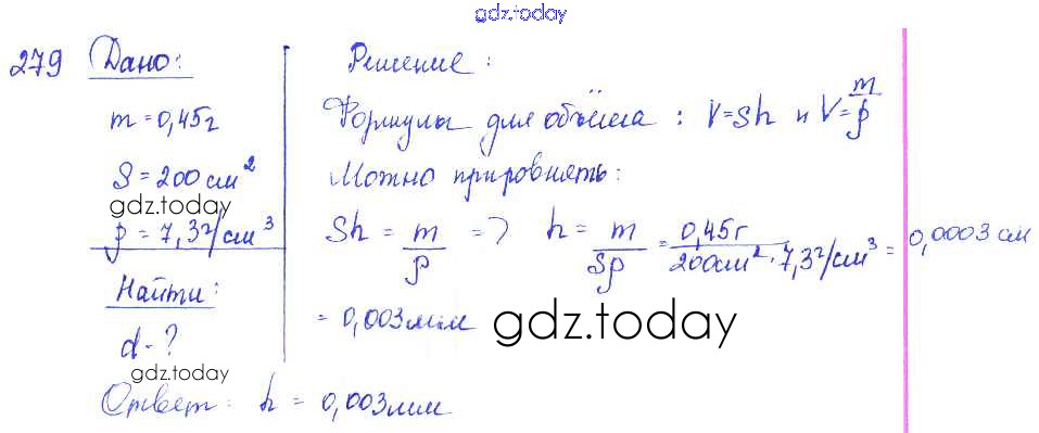 На страницах сайта gdz.today вы найдете учебный и вспомогательный материал, направленный на улучшения знаний школьной программы. ГДЗ - онлайн мир знаний Решение к заданиям 279 Сборнику задач по Физике для 7-9 класса Лукашик, Иванова Просвещение 2011