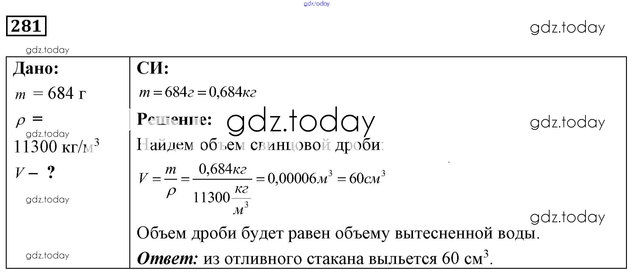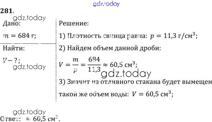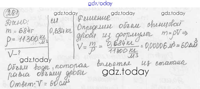На страницах сайта gdz.today вы найдете учебный и вспомогательный материал, направленный на улучшения знаний школьной программы. ГДЗ - онлайн мир знаний Решение к заданиям 281 Сборнику задач по Физике для 7-9 класса Лукашик, Иванова Просвещение 2011