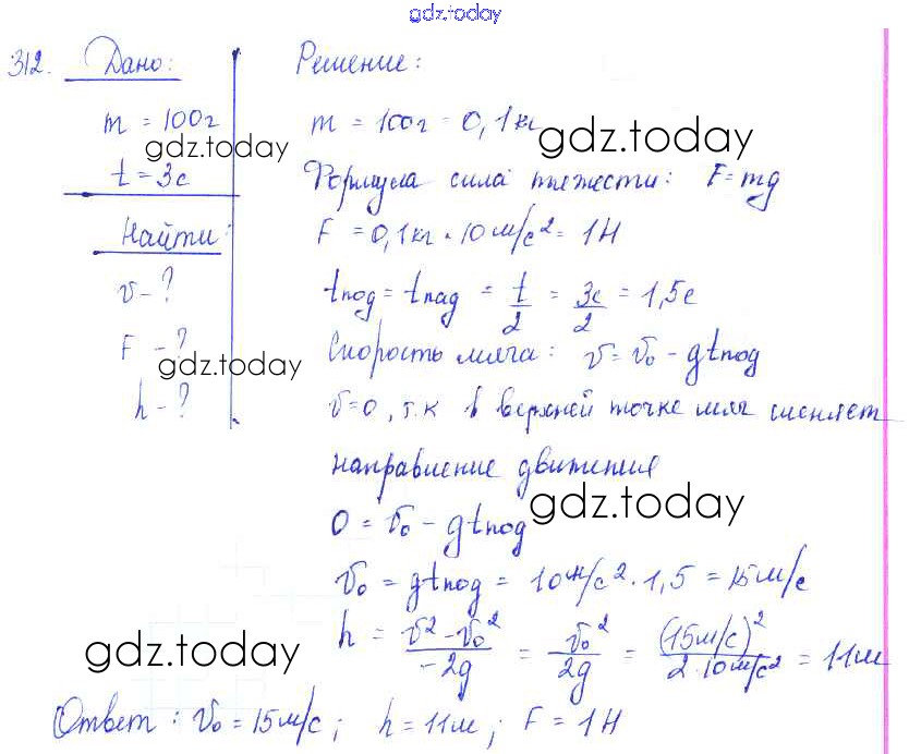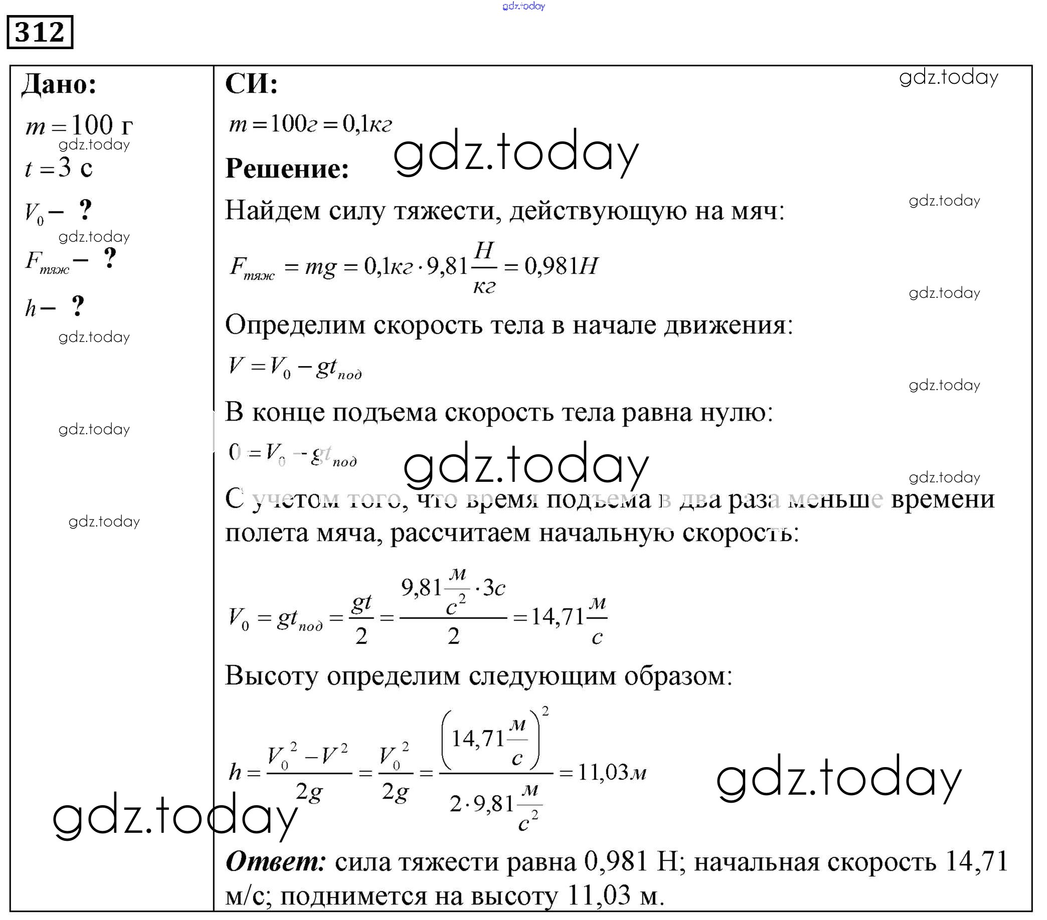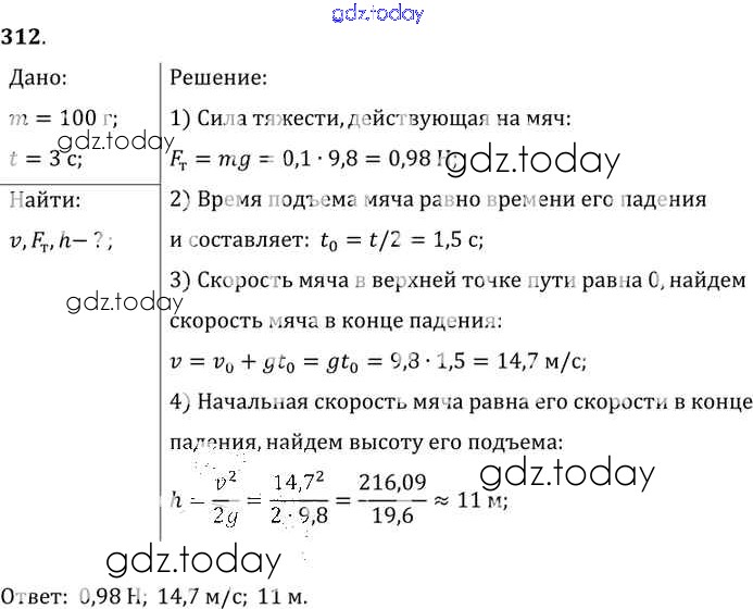 На страницах сайта gdz.today вы найдете учебный и вспомогательный материал, направленный на улучшения знаний школьной программы. ГДЗ - онлайн мир знаний Решение к заданиям 312 Сборнику задач по Физике для 7-9 класса Лукашик, Иванова Просвещение 2011