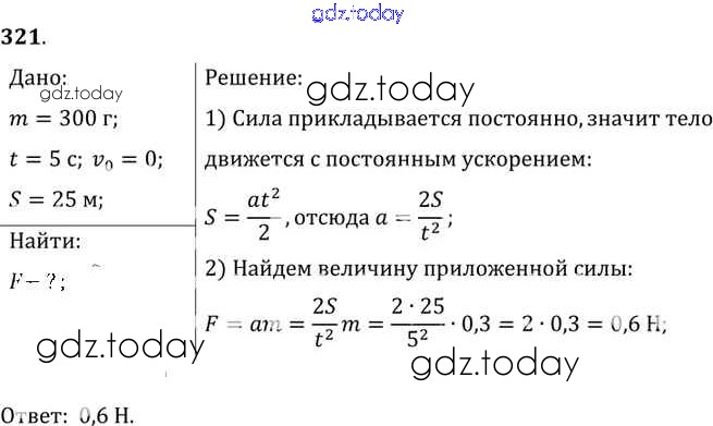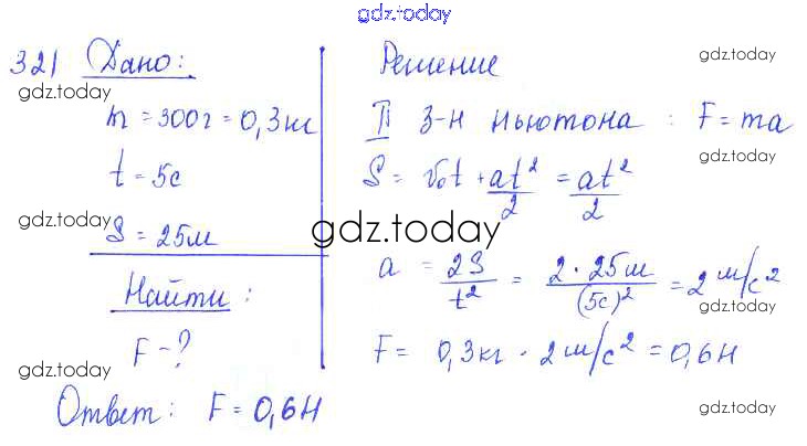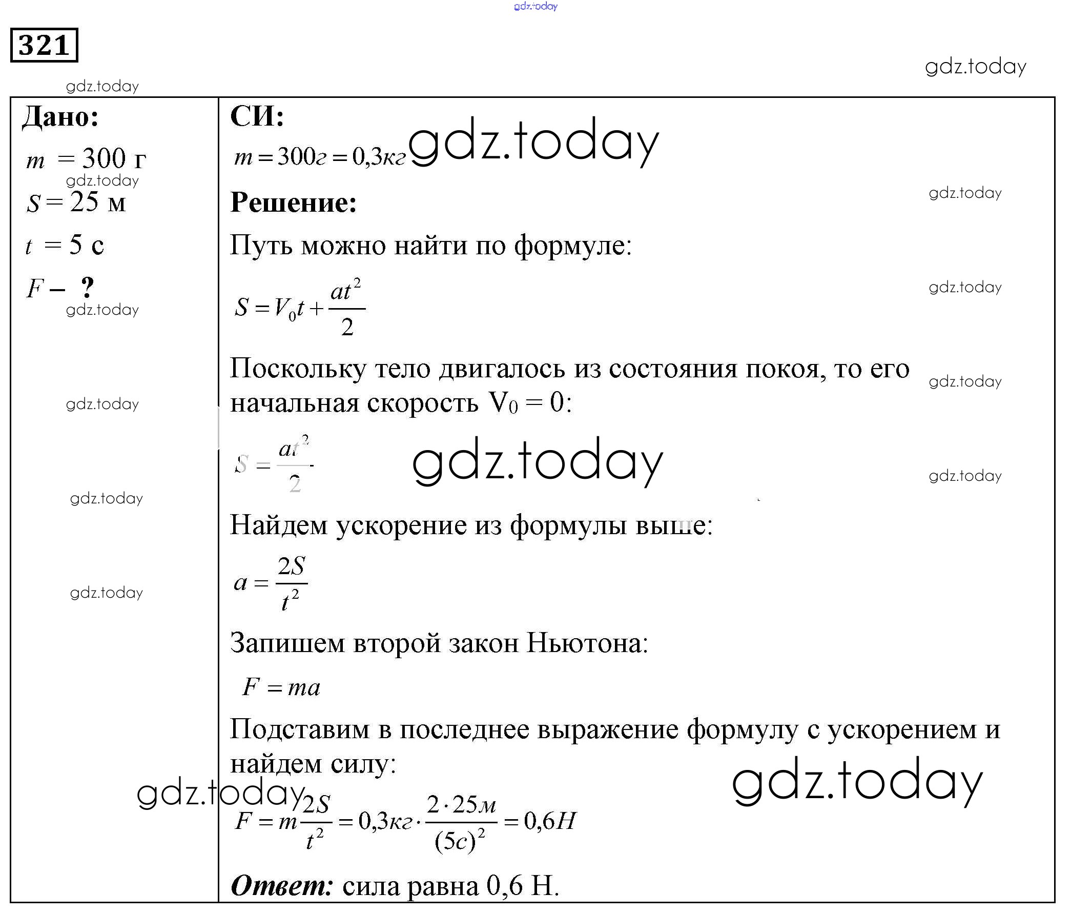 На страницах сайта gdz.today вы найдете учебный и вспомогательный материал, направленный на улучшения знаний школьной программы. ГДЗ - онлайн мир знаний Решение к заданиям 321 Сборнику задач по Физике для 7-9 класса Лукашик, Иванова Просвещение 2011