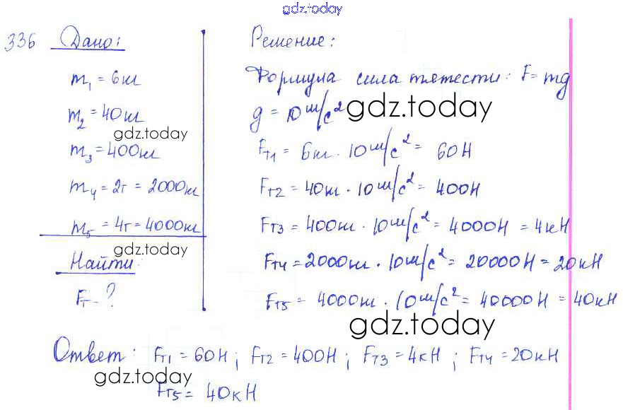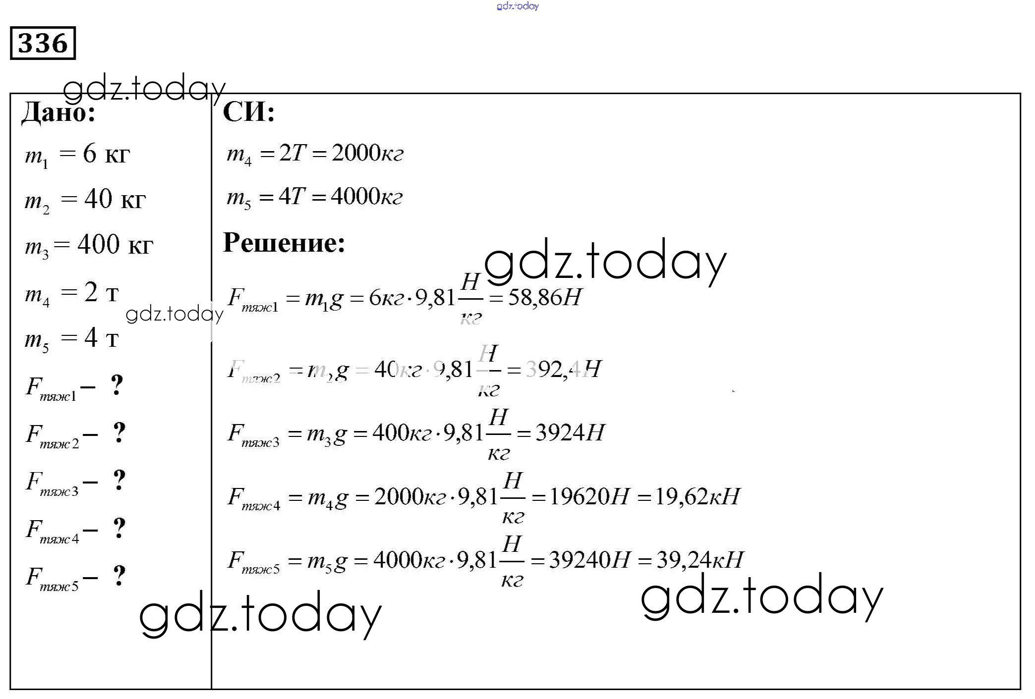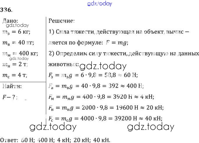 На страницах сайта gdz.today вы найдете учебный и вспомогательный материал, направленный на улучшения знаний школьной программы. ГДЗ - онлайн мир знаний Решение к заданиям 336 Сборнику задач по Физике для 7-9 класса Лукашик, Иванова Просвещение 2011
