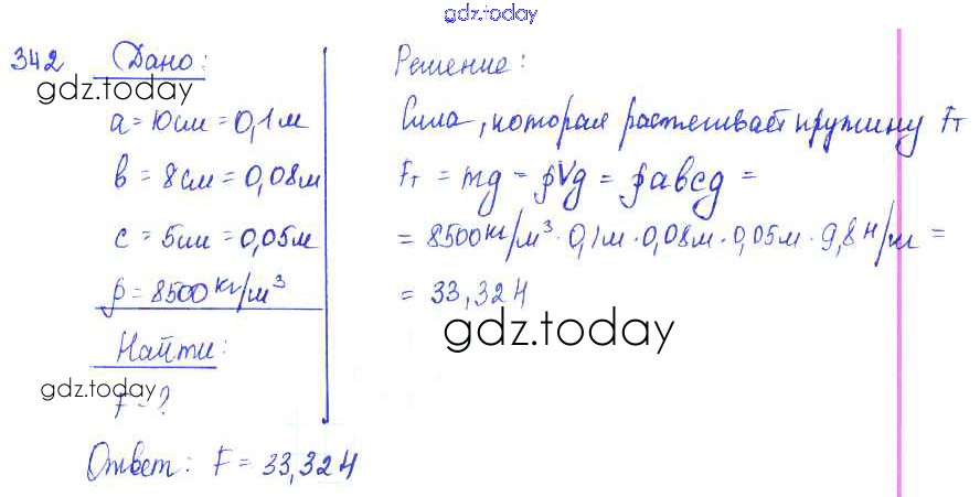 На страницах сайта gdz.today вы найдете учебный и вспомогательный материал, направленный на улучшения знаний школьной программы. ГДЗ - онлайн мир знаний Решение к заданиям 342 Сборнику задач по Физике для 7-9 класса Лукашик, Иванова Просвещение 2011