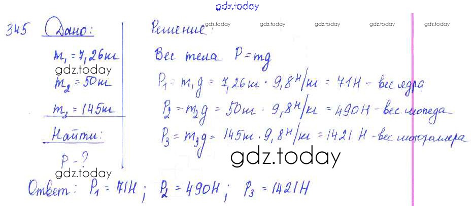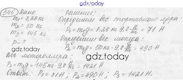Ответы к Решение к заданиям 345 Сборнику задач по Физике для 7-9 класса Лукашик, Иванова Просвещение 2011