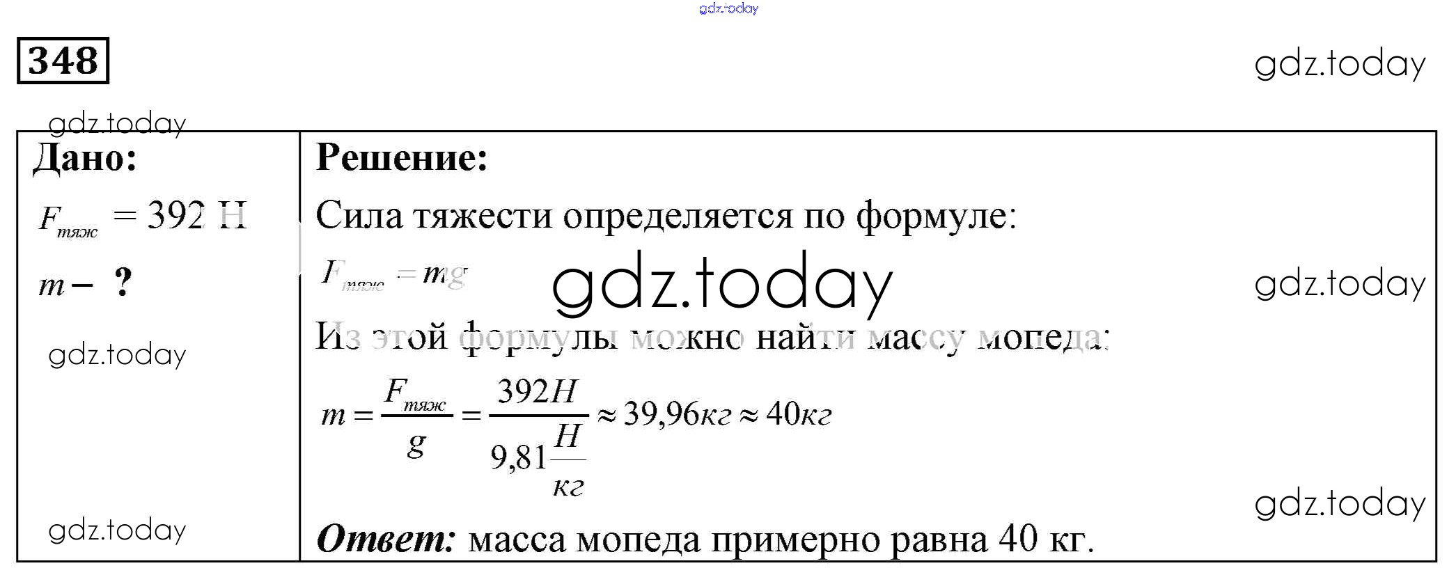 На страницах сайта gdz.today вы найдете учебный и вспомогательный материал, направленный на улучшения знаний школьной программы. ГДЗ - онлайн мир знаний Решение к заданиям 348 Сборнику задач по Физике для 7-9 класса Лукашик, Иванова Просвещение 2011
