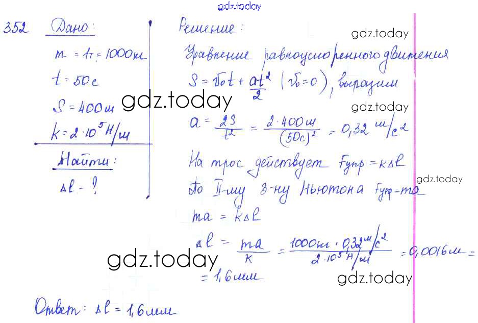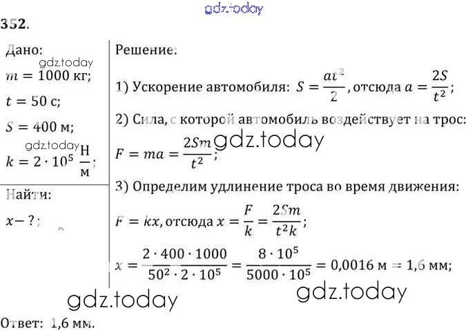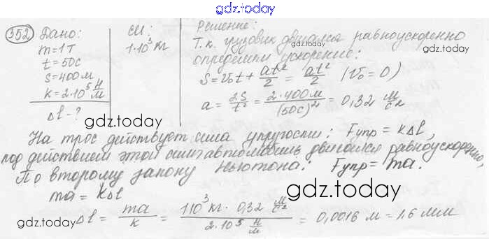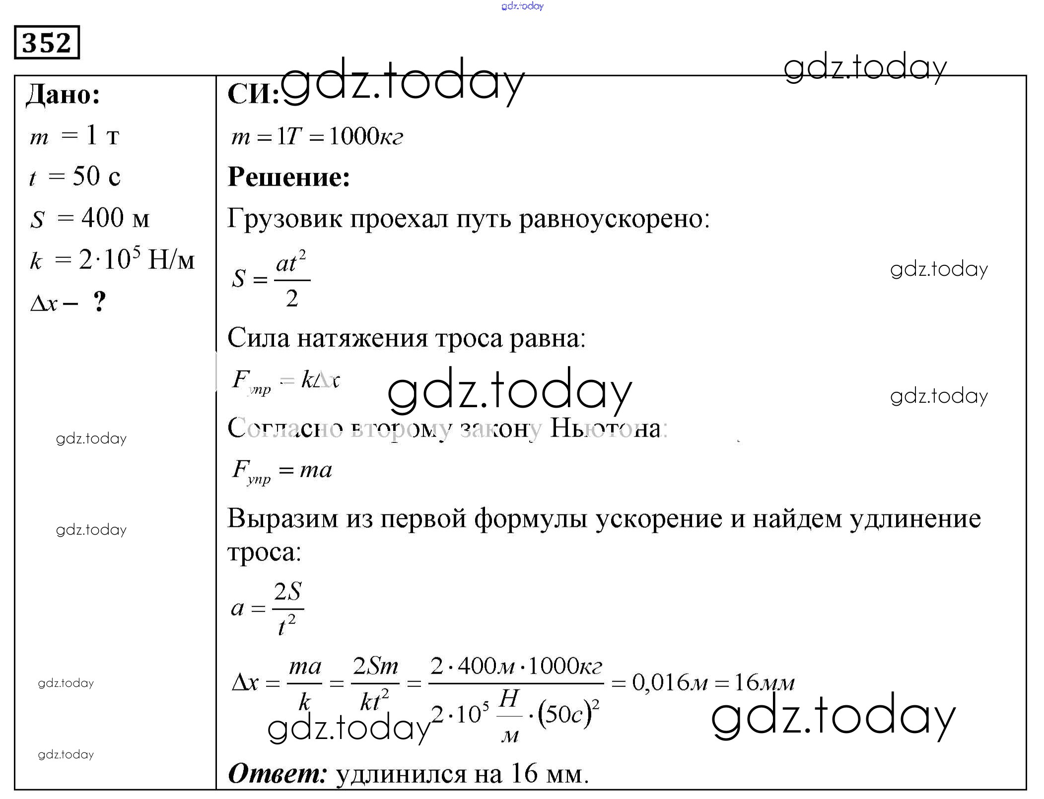 На страницах сайта gdz.today вы найдете учебный и вспомогательный материал, направленный на улучшения знаний школьной программы. ГДЗ - онлайн мир знаний Решение к заданиям 352 Сборнику задач по Физике для 7-9 класса Лукашик, Иванова Просвещение 2011