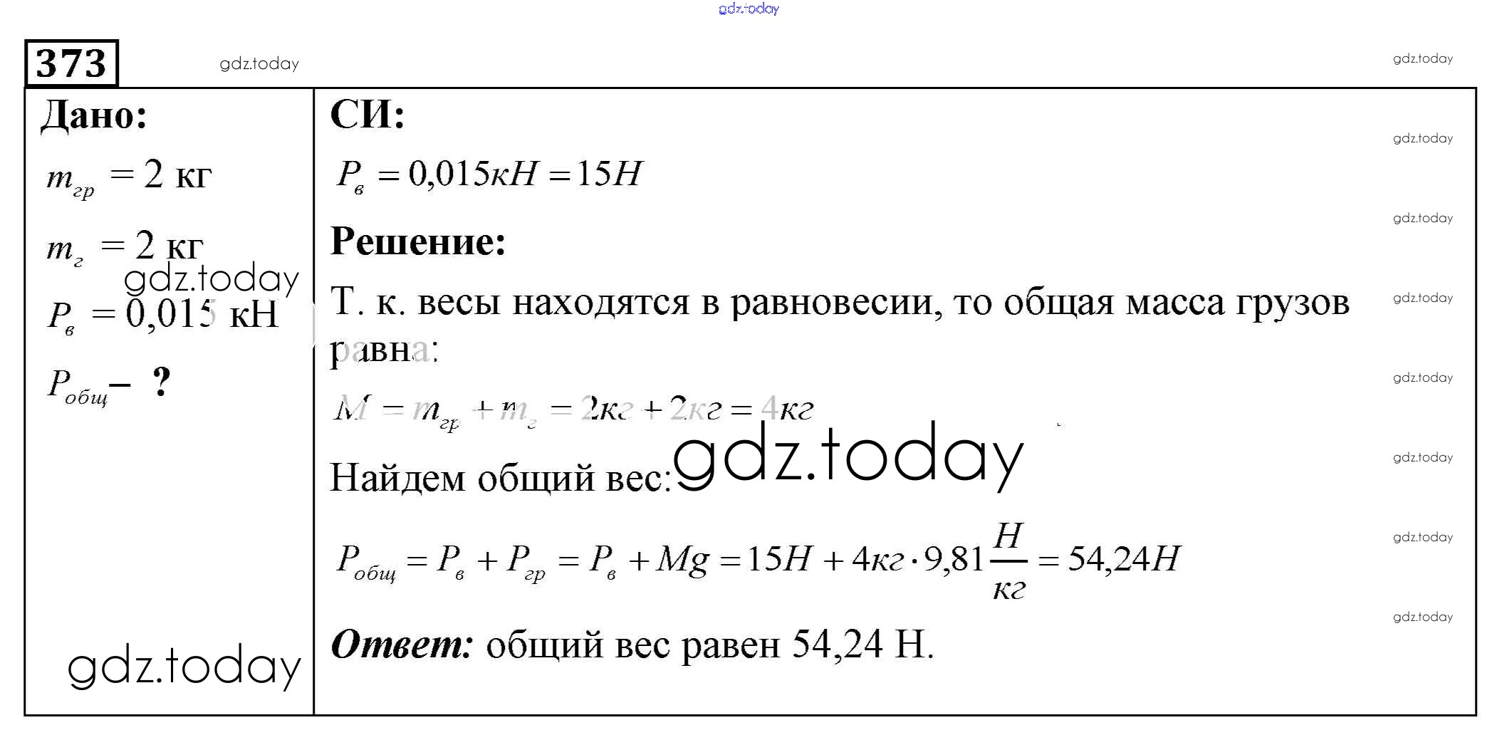 На страницах сайта gdz.today вы найдете учебный и вспомогательный материал, направленный на улучшения знаний школьной программы. ГДЗ - онлайн мир знаний Решение к заданиям 373 Сборнику задач по Физике для 7-9 класса Лукашик, Иванова Просвещение 2011