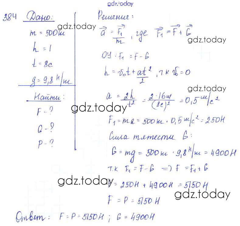 Ответы к Решение к заданиям 384 Сборнику задач по Физике для 7-9 класса Лукашик, Иванова Просвещение 2011
