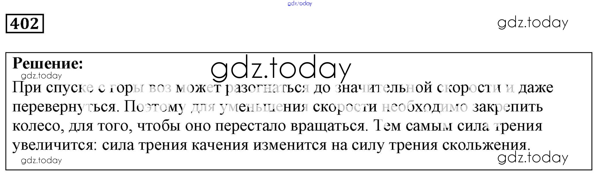 На страницах сайта gdz.today вы найдете учебный и вспомогательный материал, направленный на улучшения знаний школьной программы. ГДЗ - онлайн мир знаний Решение к заданиям 402 Сборнику задач по Физике для 7-9 класса Лукашик, Иванова Просвещение 2011