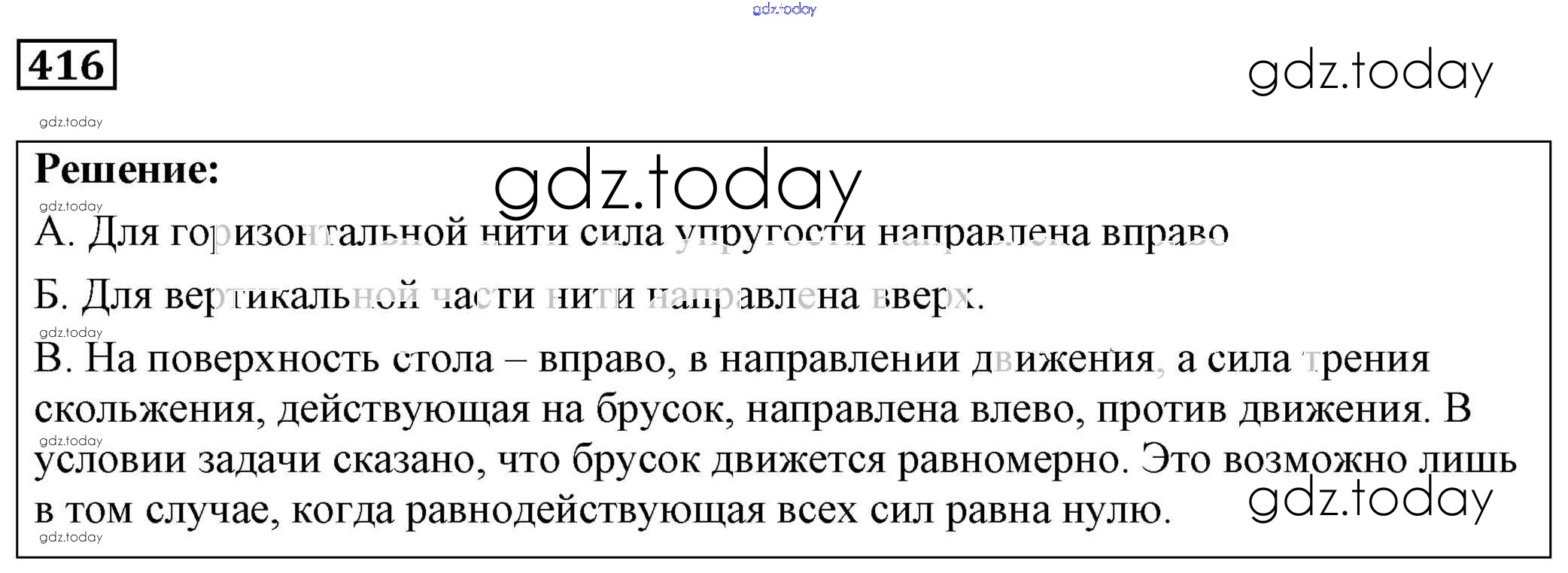 На страницах сайта gdz.today вы найдете учебный и вспомогательный материал, направленный на улучшения знаний школьной программы. ГДЗ - онлайн мир знаний Решение к заданиям 416 Сборнику задач по Физике для 7-9 класса Лукашик, Иванова Просвещение 2011