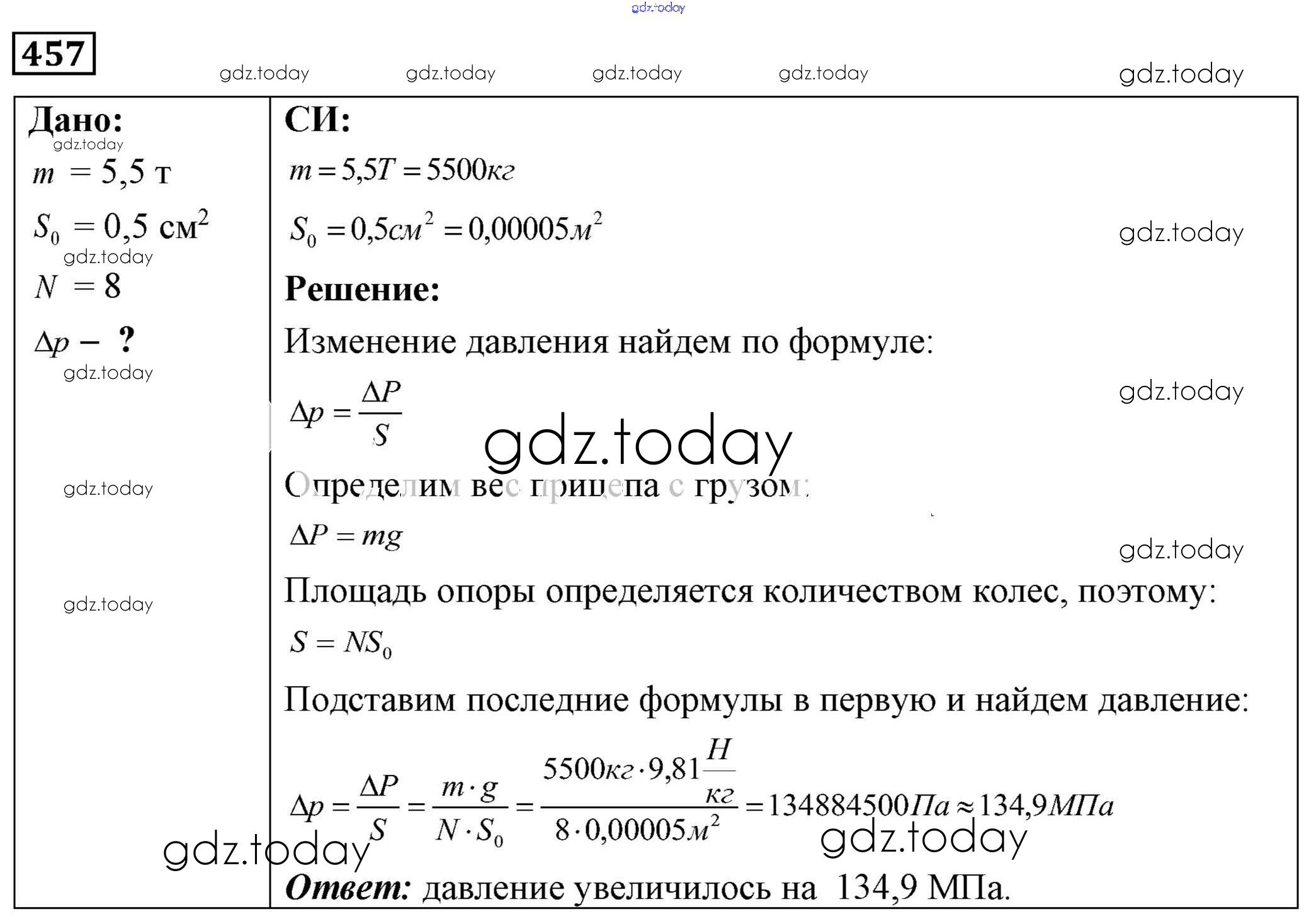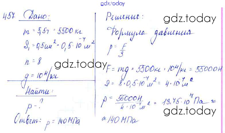 На страницах сайта gdz.today вы найдете учебный и вспомогательный материал, направленный на улучшения знаний школьной программы. ГДЗ - онлайн мир знаний Решение к заданиям 457 Сборнику задач по Физике для 7-9 класса Лукашик, Иванова Просвещение 2011