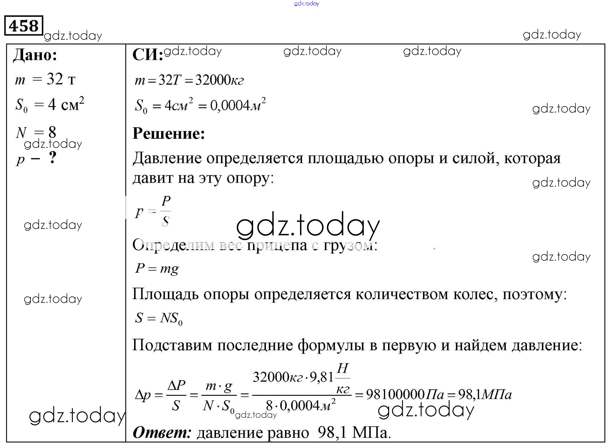 На страницах сайта gdz.today вы найдете учебный и вспомогательный материал, направленный на улучшения знаний школьной программы. ГДЗ - онлайн мир знаний Решение к заданиям 458 Сборнику задач по Физике для 7-9 класса Лукашик, Иванова Просвещение 2011