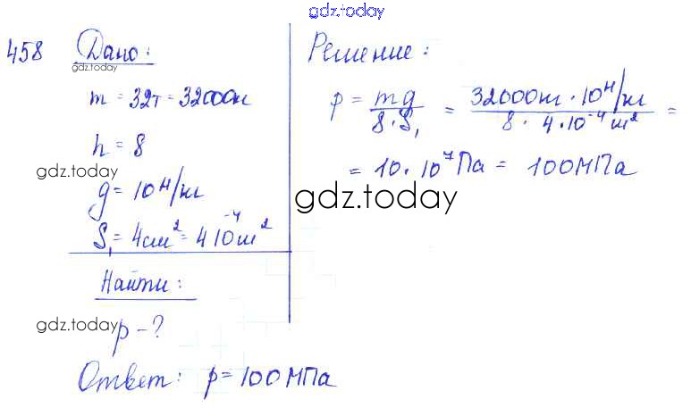 Ответы к Решение к заданиям 458 Сборнику задач по Физике для 7-9 класса Лукашик, Иванова Просвещение 2011