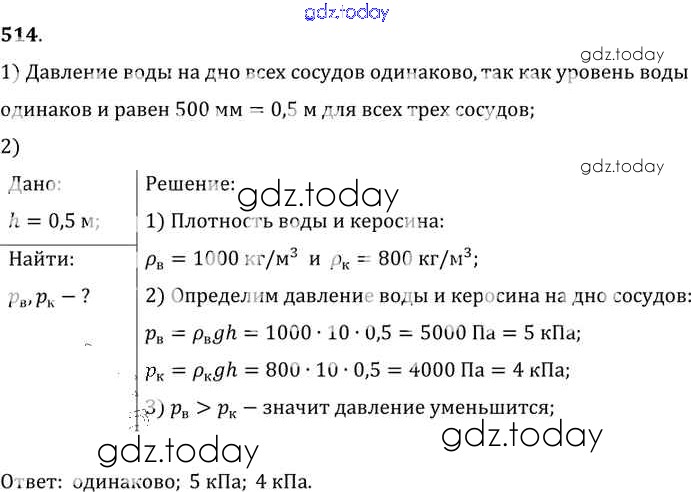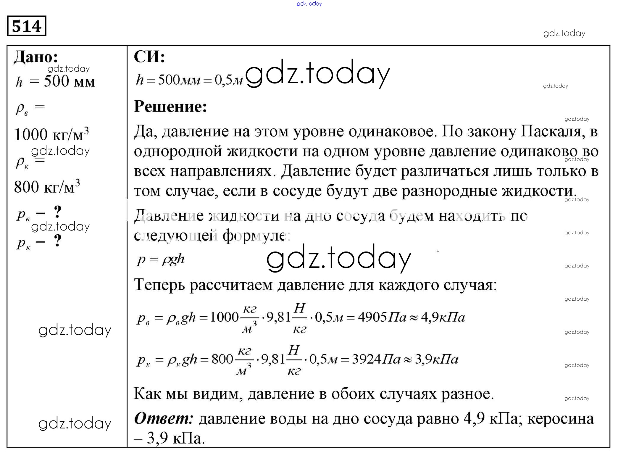 На страницах сайта gdz.today вы найдете учебный и вспомогательный материал, направленный на улучшения знаний школьной программы. ГДЗ - онлайн мир знаний Решение к заданиям 514 Сборнику задач по Физике для 7-9 класса Лукашик, Иванова Просвещение 2011