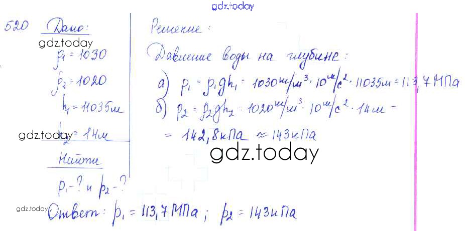 Ответы к Решение к заданиям 520 Сборнику задач по Физике для 7-9 класса Лукашик, Иванова Просвещение 2011