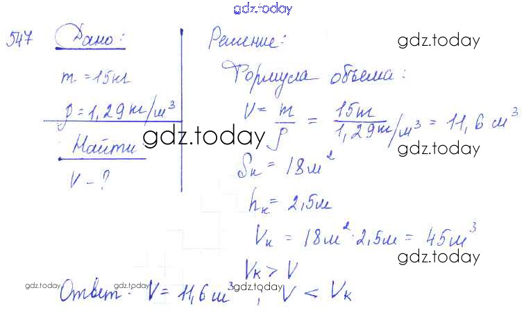 На страницах сайта gdz.today вы найдете учебный и вспомогательный материал, направленный на улучшения знаний школьной программы. ГДЗ - онлайн мир знаний Решение к заданиям 547 Сборнику задач по Физике для 7-9 класса Лукашик, Иванова Просвещение 2011