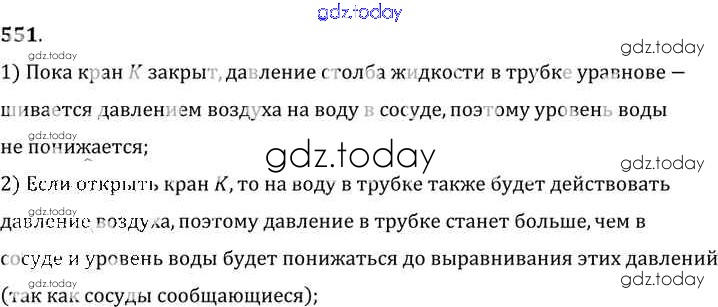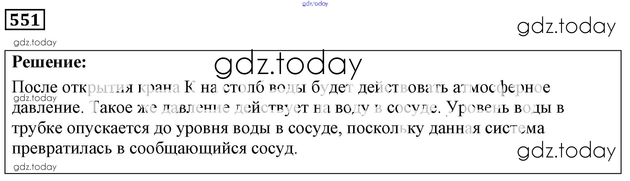 На страницах сайта gdz.today вы найдете учебный и вспомогательный материал, направленный на улучшения знаний школьной программы. ГДЗ - онлайн мир знаний Решение к заданиям 551 Сборнику задач по Физике для 7-9 класса Лукашик, Иванова Просвещение 2011