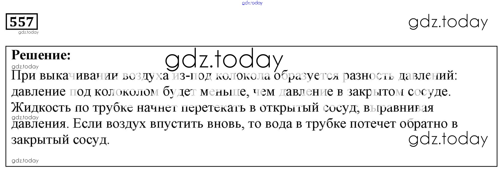 На страницах сайта gdz.today вы найдете учебный и вспомогательный материал, направленный на улучшения знаний школьной программы. ГДЗ - онлайн мир знаний Решение к заданиям 557 Сборнику задач по Физике для 7-9 класса Лукашик, Иванова Просвещение 2011