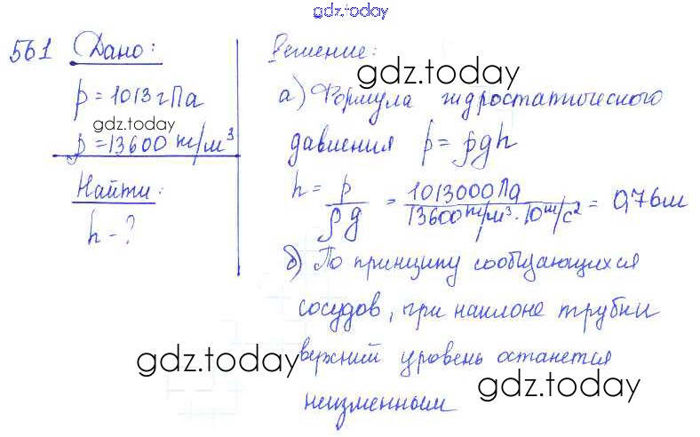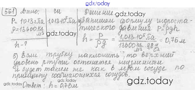 На страницах сайта gdz.today вы найдете учебный и вспомогательный материал, направленный на улучшения знаний школьной программы. ГДЗ - онлайн мир знаний Решение к заданиям 561 Сборнику задач по Физике для 7-9 класса Лукашик, Иванова Просвещение 2011