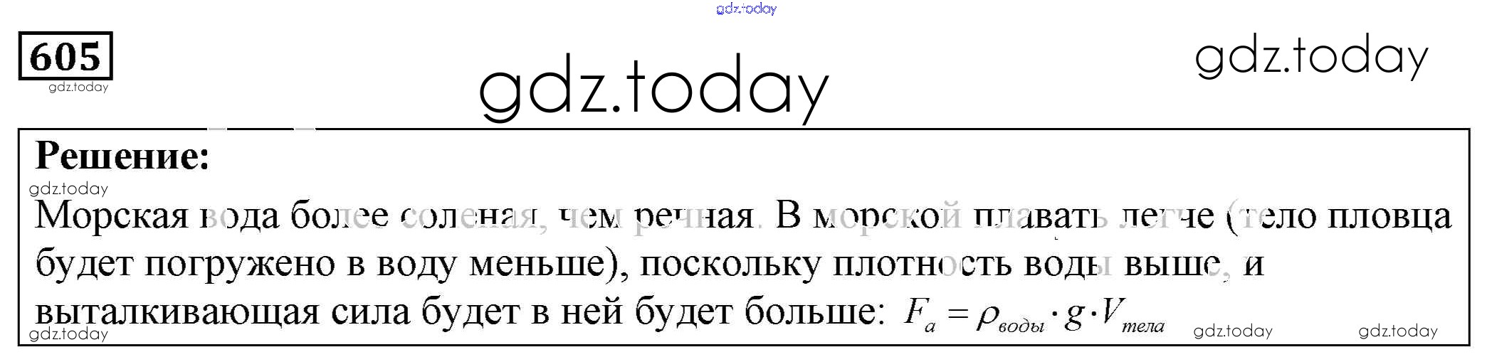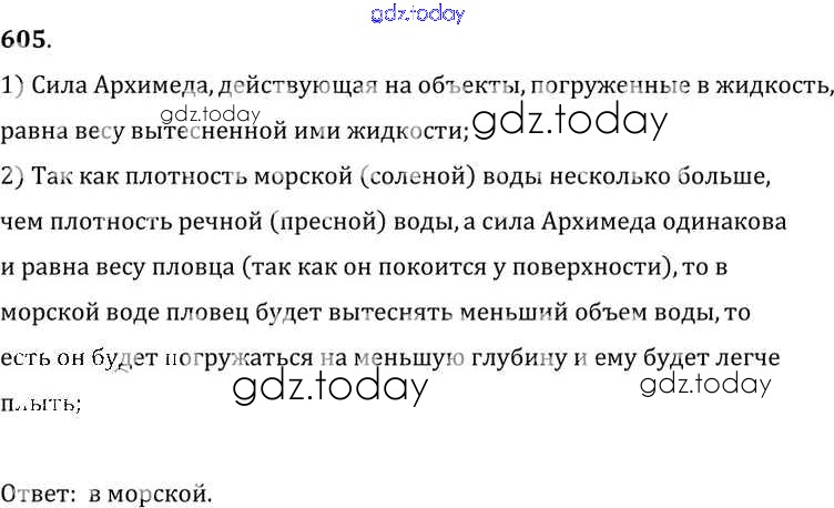 На страницах сайта gdz.today вы найдете учебный и вспомогательный материал, направленный на улучшения знаний школьной программы. ГДЗ - онлайн мир знаний Решение к заданиям 605 Сборнику задач по Физике для 7-9 класса Лукашик, Иванова Просвещение 2011