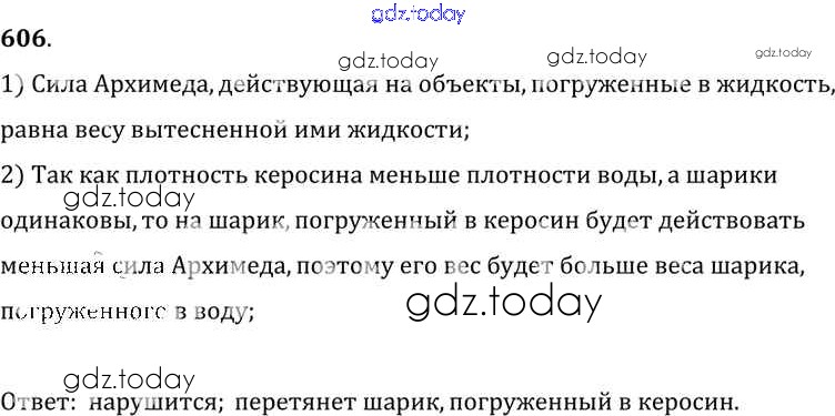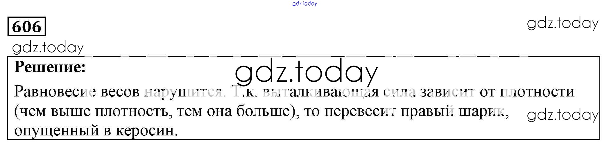 На страницах сайта gdz.today вы найдете учебный и вспомогательный материал, направленный на улучшения знаний школьной программы. ГДЗ - онлайн мир знаний Решение к заданиям 606 Сборнику задач по Физике для 7-9 класса Лукашик, Иванова Просвещение 2011