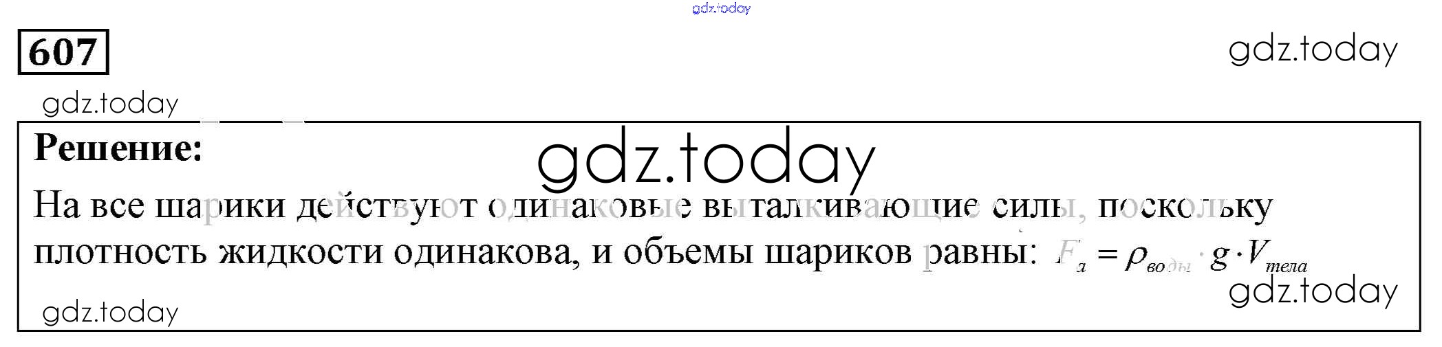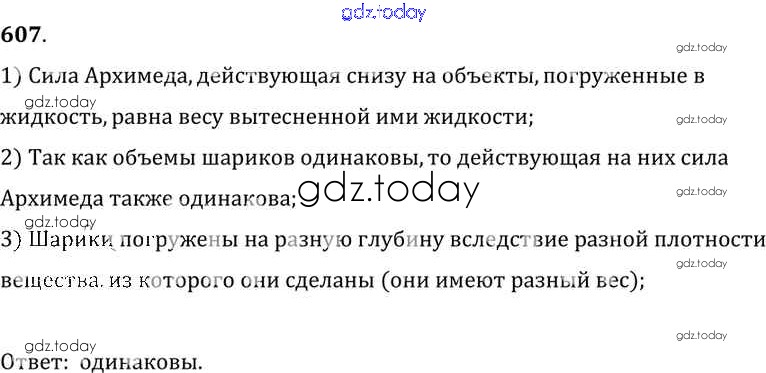 На страницах сайта gdz.today вы найдете учебный и вспомогательный материал, направленный на улучшения знаний школьной программы. ГДЗ - онлайн мир знаний Решение к заданиям 607 Сборнику задач по Физике для 7-9 класса Лукашик, Иванова Просвещение 2011