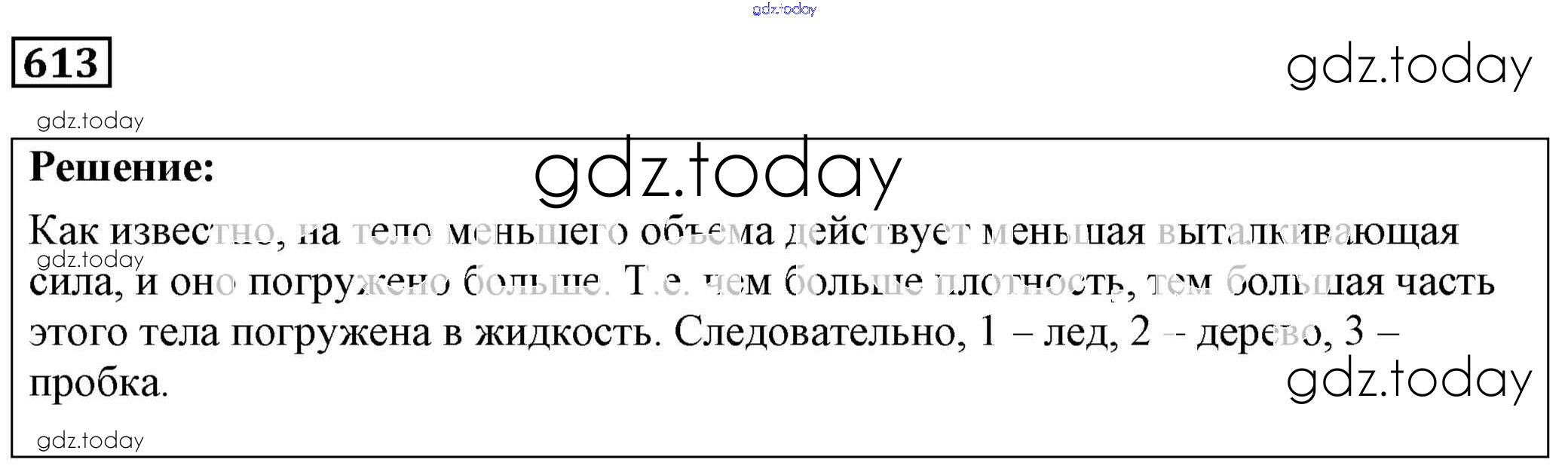 На страницах сайта gdz.today вы найдете учебный и вспомогательный материал, направленный на улучшения знаний школьной программы. ГДЗ - онлайн мир знаний Решение к заданиям 613 Сборнику задач по Физике для 7-9 класса Лукашик, Иванова Просвещение 2011