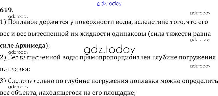 На страницах сайта gdz.today вы найдете учебный и вспомогательный материал, направленный на улучшения знаний школьной программы. ГДЗ - онлайн мир знаний Решение к заданиям 619 Сборнику задач по Физике для 7-9 класса Лукашик, Иванова Просвещение 2011