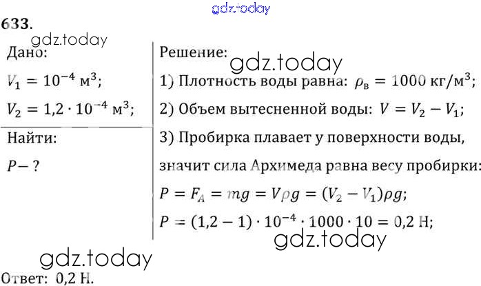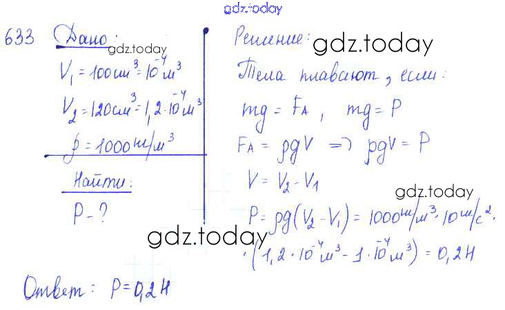 На страницах сайта gdz.today вы найдете учебный и вспомогательный материал, направленный на улучшения знаний школьной программы. ГДЗ - онлайн мир знаний Решение к заданиям 633 Сборнику задач по Физике для 7-9 класса Лукашик, Иванова Просвещение 2011
