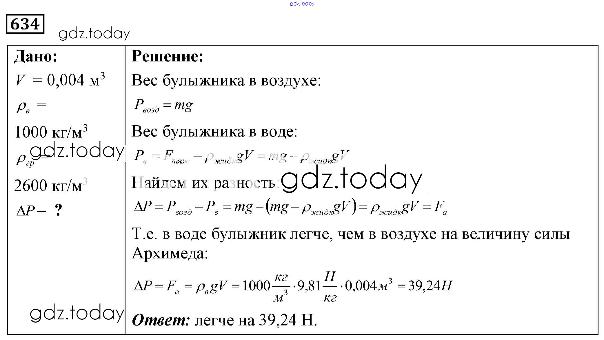 На страницах сайта gdz.today вы найдете учебный и вспомогательный материал, направленный на улучшения знаний школьной программы. ГДЗ - онлайн мир знаний Решение к заданиям 634 Сборнику задач по Физике для 7-9 класса Лукашик, Иванова Просвещение 2011