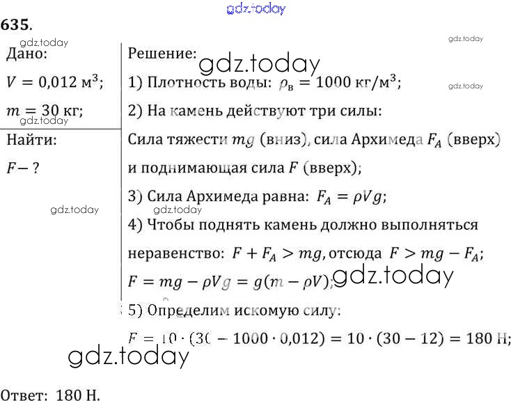 На страницах сайта gdz.today вы найдете учебный и вспомогательный материал, направленный на улучшения знаний школьной программы. ГДЗ - онлайн мир знаний Решение к заданиям 635 Сборнику задач по Физике для 7-9 класса Лукашик, Иванова Просвещение 2011