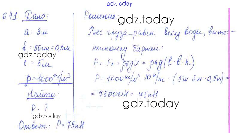 Ответы к Решение к заданиям 641 Сборнику задач по Физике для 7-9 класса Лукашик, Иванова Просвещение 2011