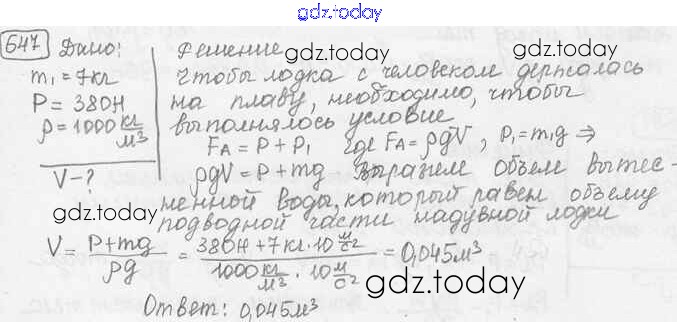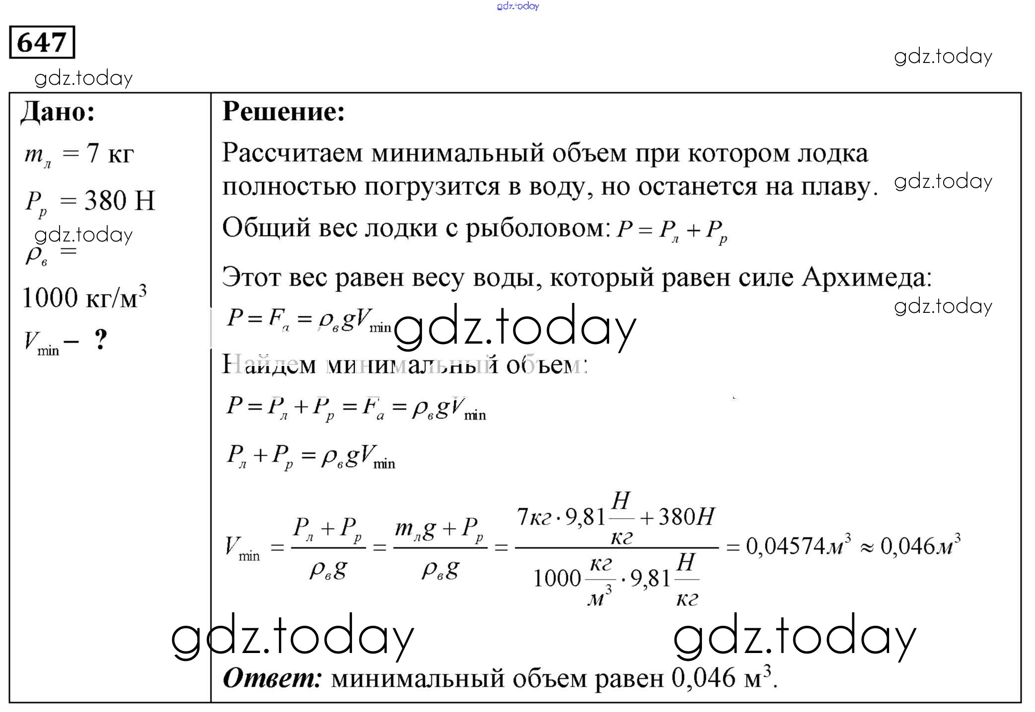 На страницах сайта gdz.today вы найдете учебный и вспомогательный материал, направленный на улучшения знаний школьной программы. ГДЗ - онлайн мир знаний Решение к заданиям 647 Сборнику задач по Физике для 7-9 класса Лукашик, Иванова Просвещение 2011