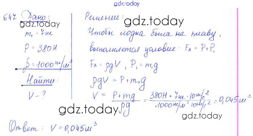 Ответы к Решение к заданиям 647 Сборнику задач по Физике для 7-9 класса Лукашик, Иванова Просвещение 2011