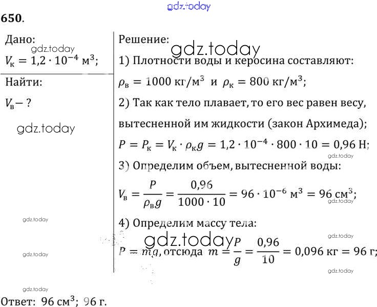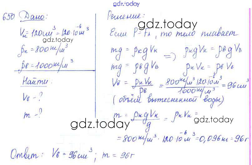 Ответы к Решение к заданиям 650 Сборнику задач по Физике для 7-9 класса Лукашик, Иванова Просвещение 2011
