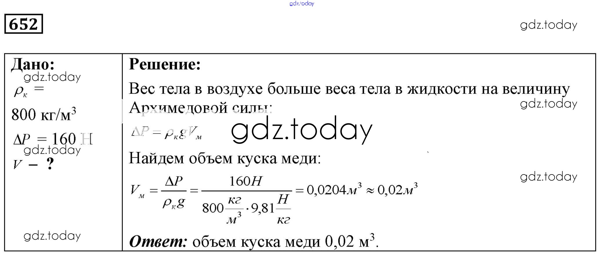 На страницах сайта gdz.today вы найдете учебный и вспомогательный материал, направленный на улучшения знаний школьной программы. ГДЗ - онлайн мир знаний Решение к заданиям 652 Сборнику задач по Физике для 7-9 класса Лукашик, Иванова Просвещение 2011